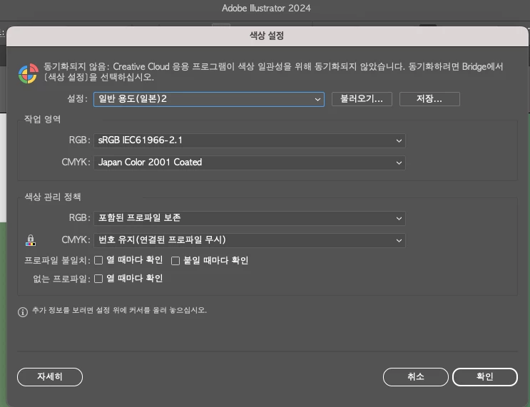 둘 다 sRGB IEC61966-2.1 입니다 어떻게 세팅을 해야 포토샵과 일러스트레이터의 색상 코드값이 일치할까요?ㅠㅠ