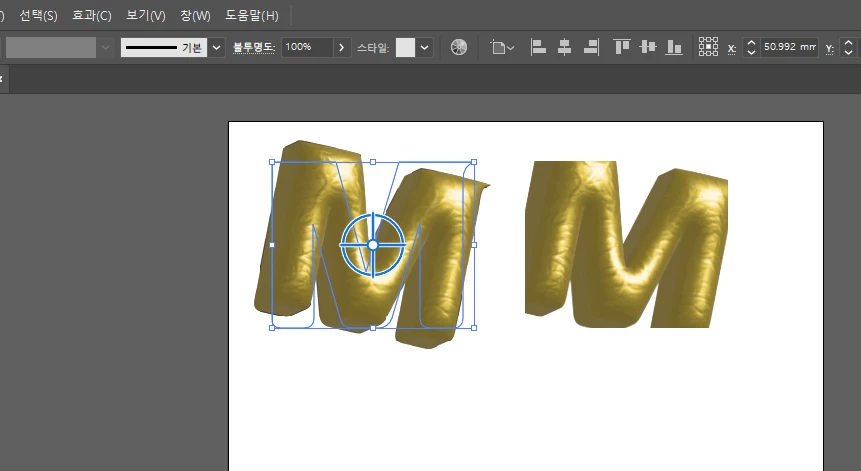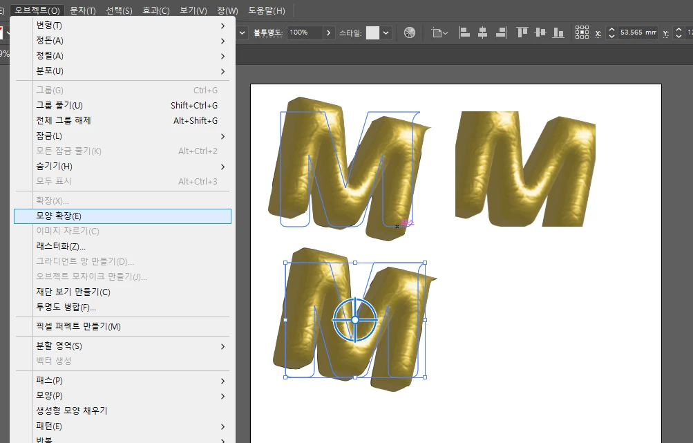 3. [ 오브젝트 ] > [ 모양 확장 ] 시 윤곽선이 3D 개체를 모두 감싸는 걸 볼 수 있습니다. 이 상태로 라이브러리에 아트웍을 추가해보겠습니다.