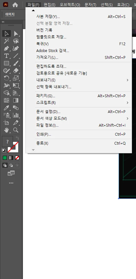 일러스트레이터 메뉴창 길이 짧아짐 문제