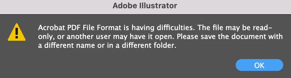 2. ai 일부 파일에서 저장 시 아래와 같은 오류로 파일 저장 불가