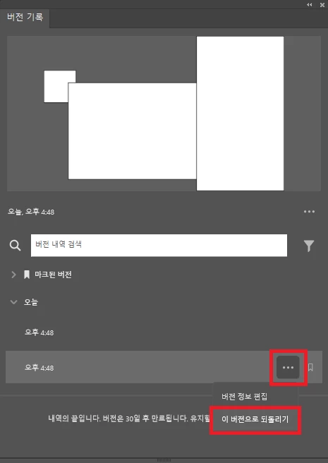 작업을 하다가 예전 단계로 돌아가려면 undo밖에 답이 없는 상황인데, 한참을 작업한 후에는 undo로는 해결이 안되서요.
