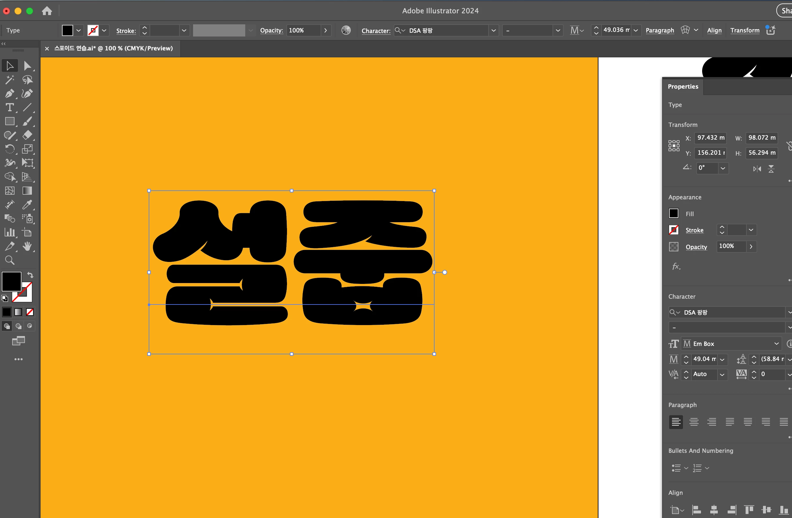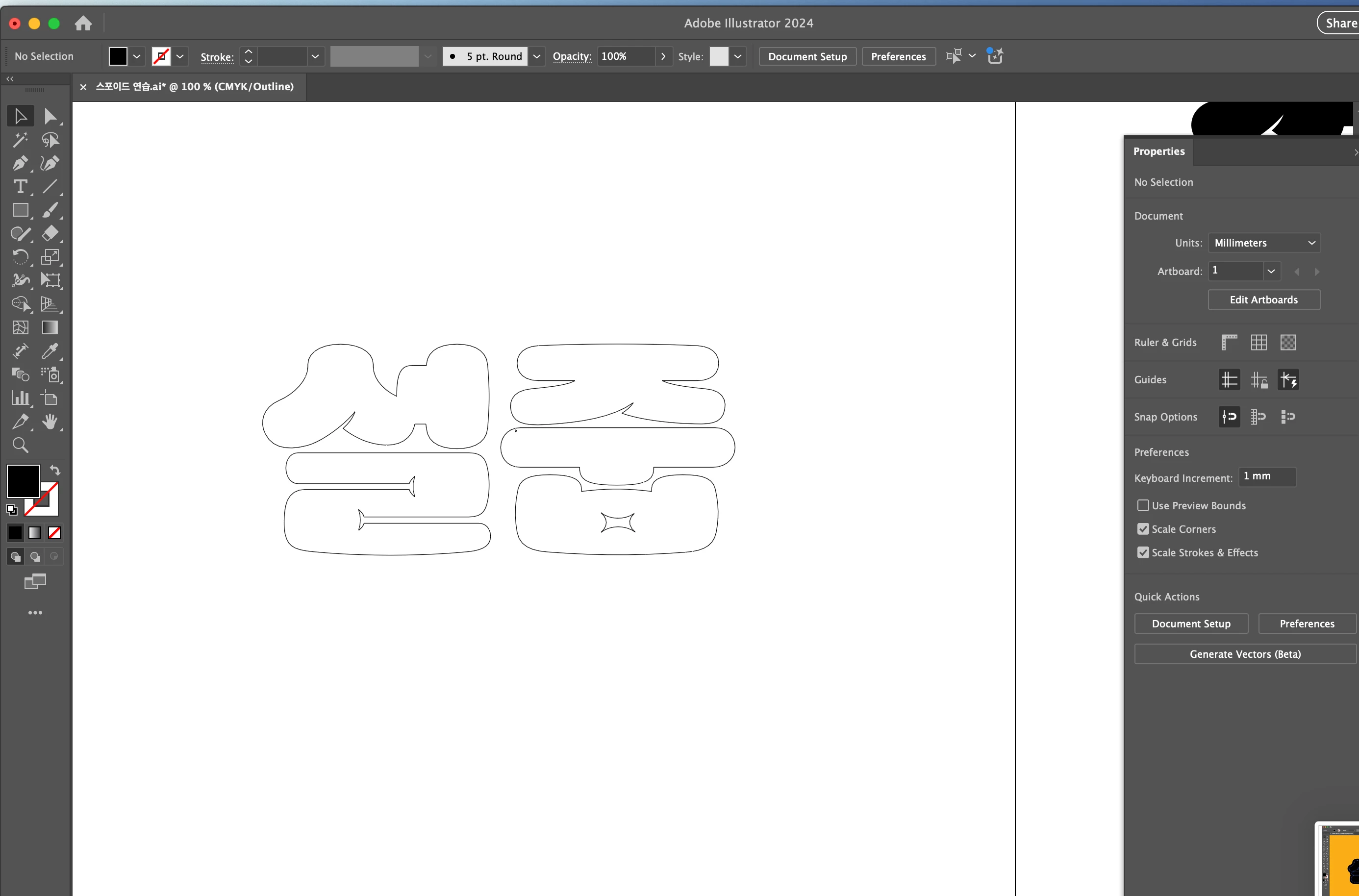 변경 후, illustrator을 실행해서 테스트 합니다.