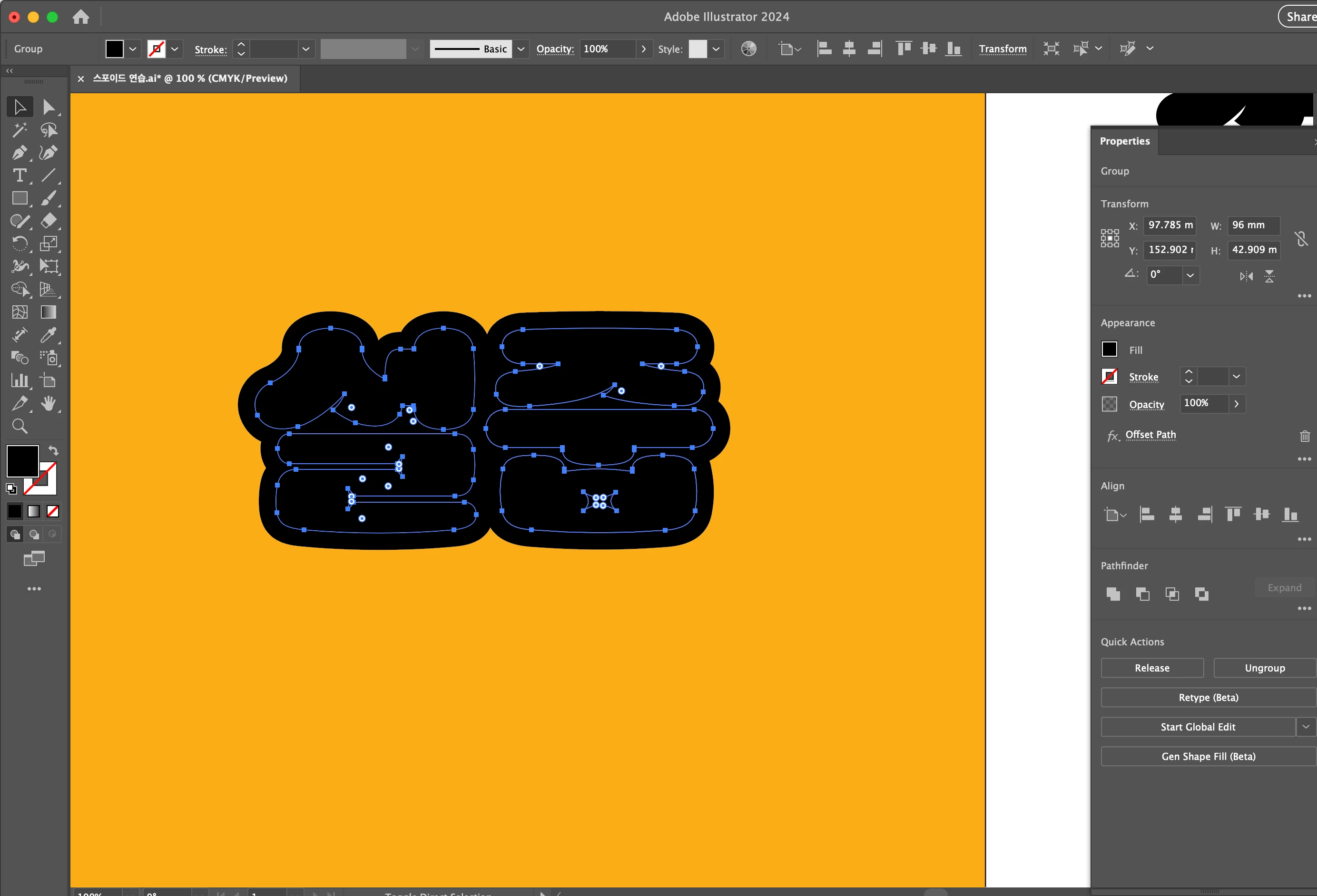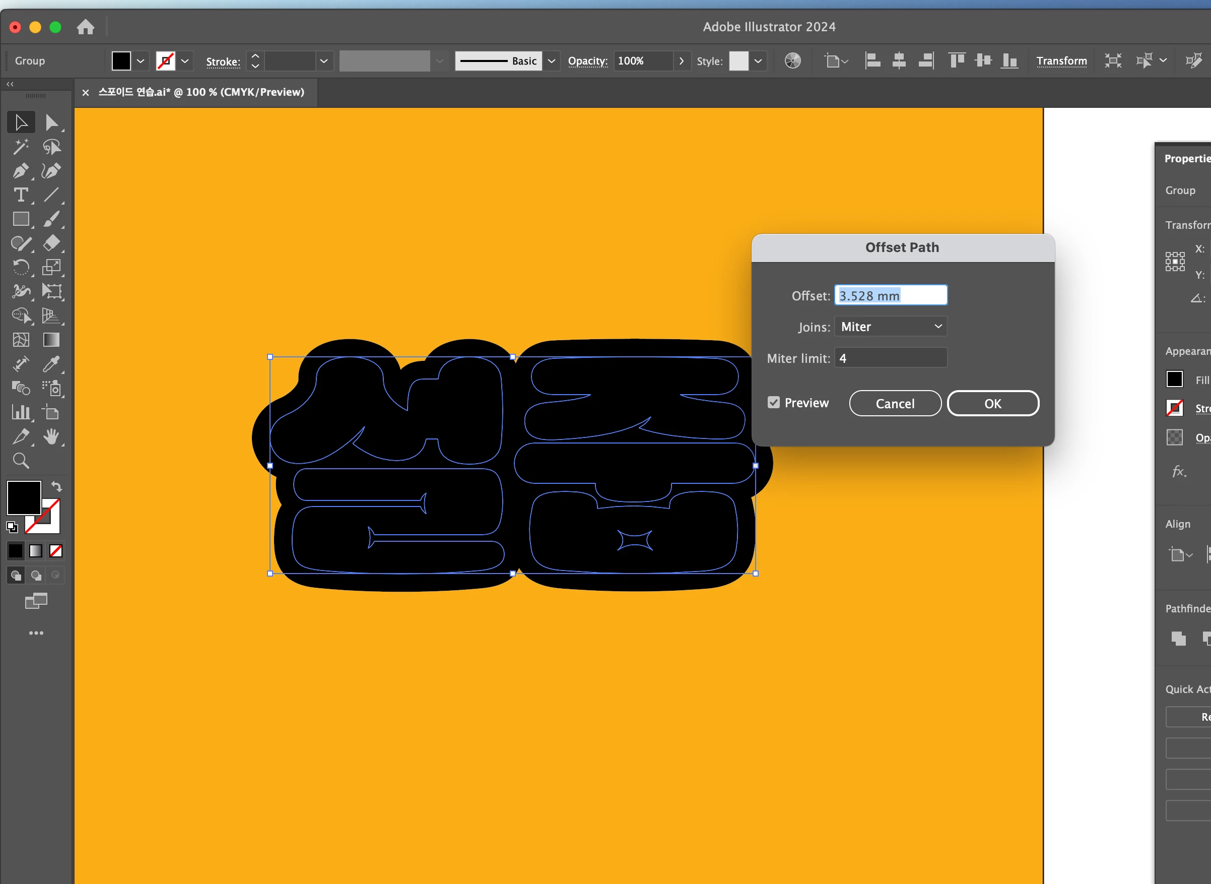 일러스트레이터 offest pash 사용시 아웃라인이 안됩니다..