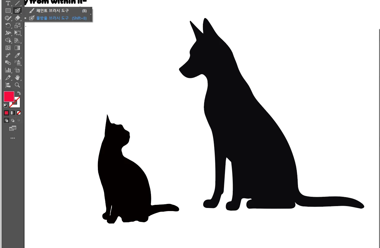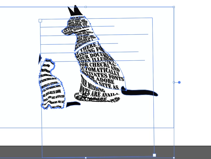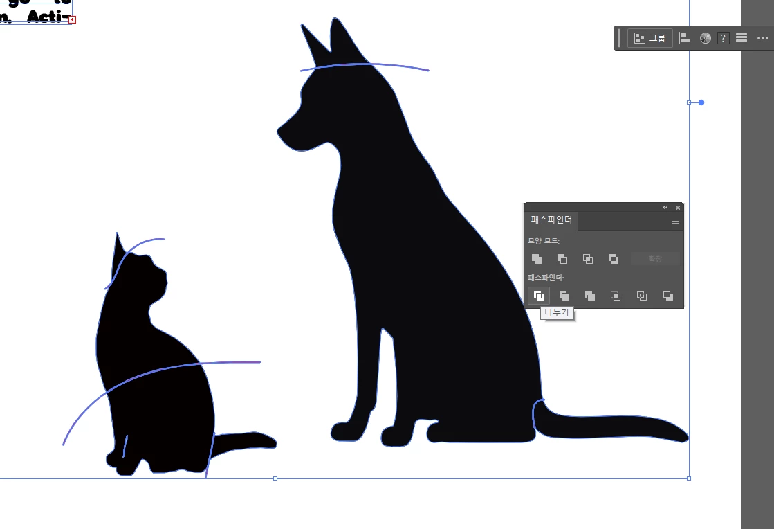 강아지의 몸통으로 예시를 들자면, 텍스트와 몸통 오브젝트를 같이 선택하고