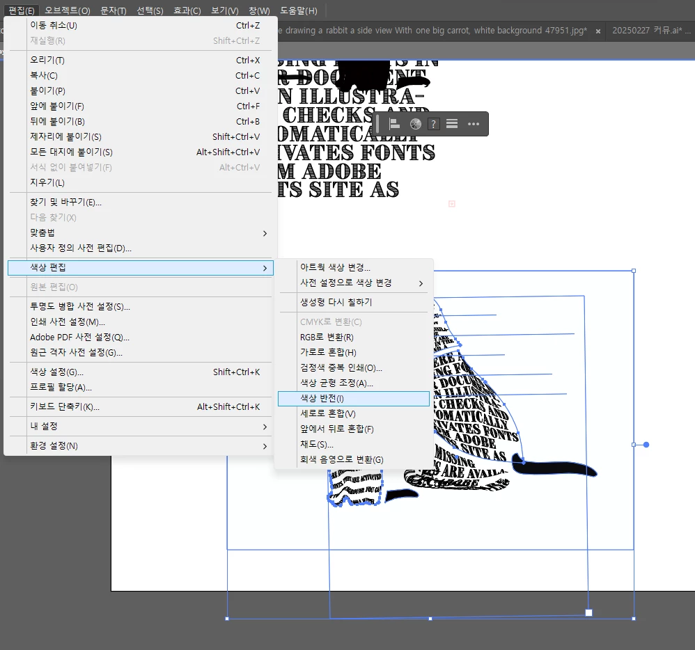 흑백 반전을 원하는경우 흰색의 네모난 오브젝트를 생성후, 전체 오브젝트 선택