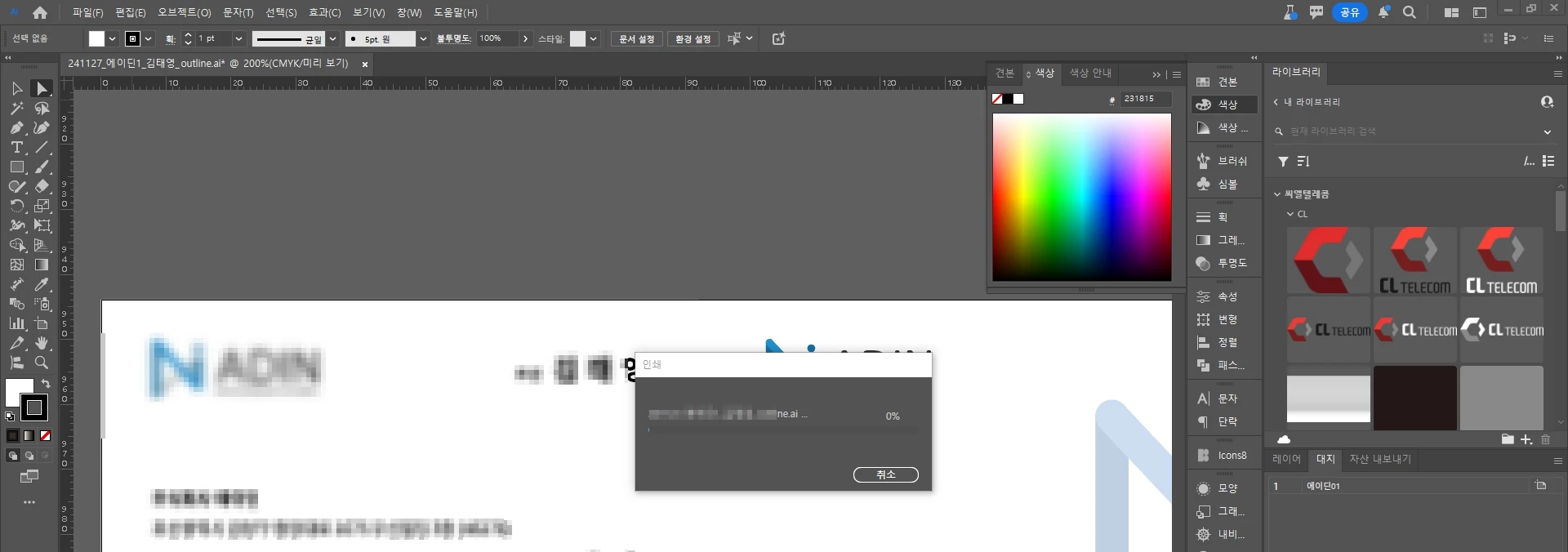 언제부터인가 일러스트 업뎃 이후로 인쇄 시 무한로딩이 걸려요