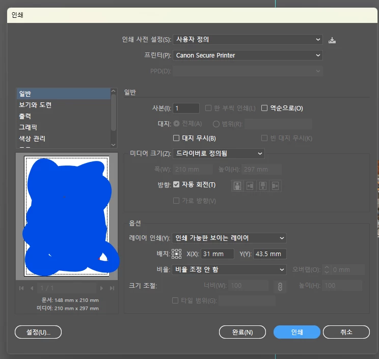 일러스트에서 바로 인쇄 시 오류