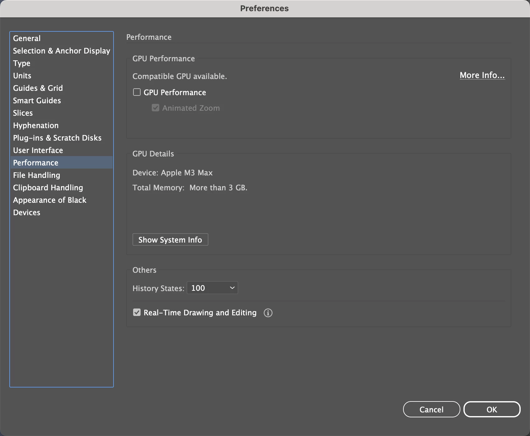맥북과 일러스트의 여러 설정들을 만져보았으나 동일한 현상이 지속됩니다