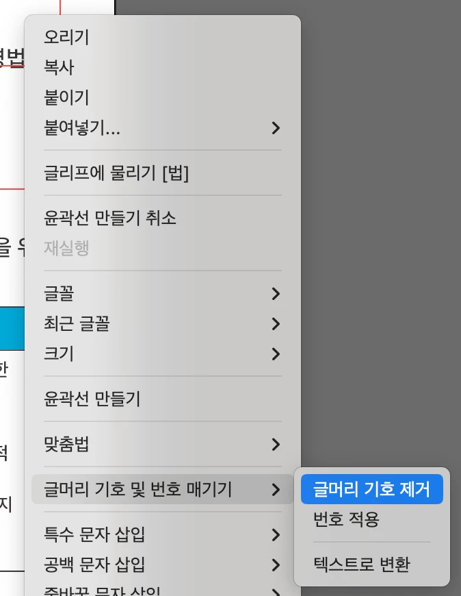일러스트 글머리 기호를 넣은 후 아웃라인하면 글머리가 사라져요