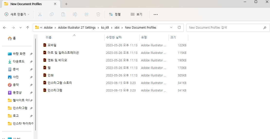 일러스트 새로운 문서 템플릿 저장 방법