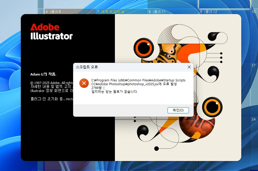 일러스트 실행 시 스크립트 오류
