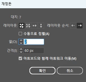 최근 일러스트 업데이트 이후 'Artboard' 의 'Rearrange' 버튼을 눌러서 아트보드들을 정렬하게되면
