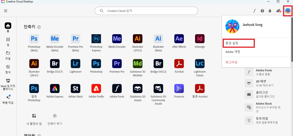 2.우측 상단의 프로필 아이콘 클릭 후" 환경 설정" 메뉴를 열어주세요!
