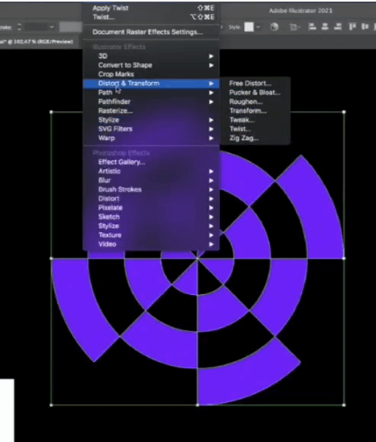 이해했습니다. 지금 칸칸마다 패스를 준것으로 보이는데 정상적으로 트위스트를 넣은 GIF를 잘 보시면 원의 중심까지 부채꼴의 면의 4칸이 하나의 묶음으로 되어 있고 그걸 비틀어서 모양이 만들어 지고 있습니다.