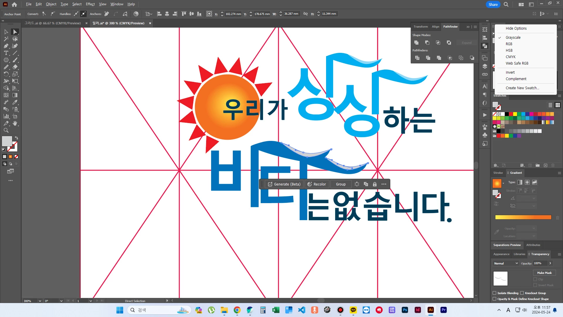 일러스트 작업 하다가 색상 변경하면 가끔, 은근 자주 그레이스케일로 바뀌어 버립니다.