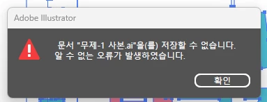 일러스트 저장시 알수없는 오류 발생으로 저장이 불가하다고 합니다