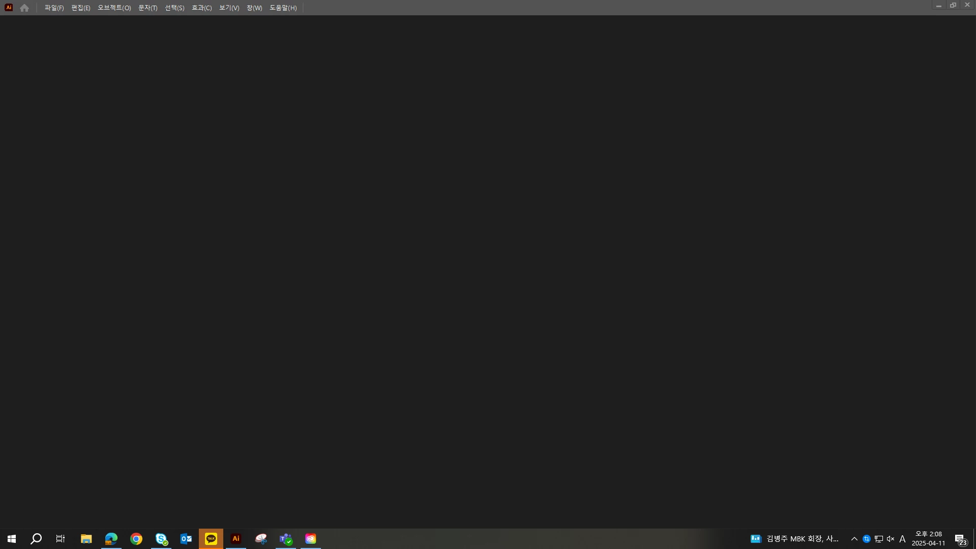 회사 컴퓨터로 일러스트 작업중인데 홈 화면이 아무것도 뜨지 않습니다...