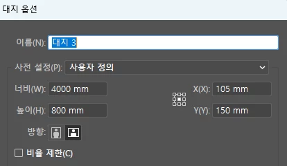 일러스트에서 대지사이즈를 4000mm(w)x800mm(h)/3000mm(w)x800(h)로 설정하고 현수막 작업을 했는데요, AI파일을 다른 컴퓨터에서 열면 사이즈가 아예 다르게 저장이 되어있습니다.