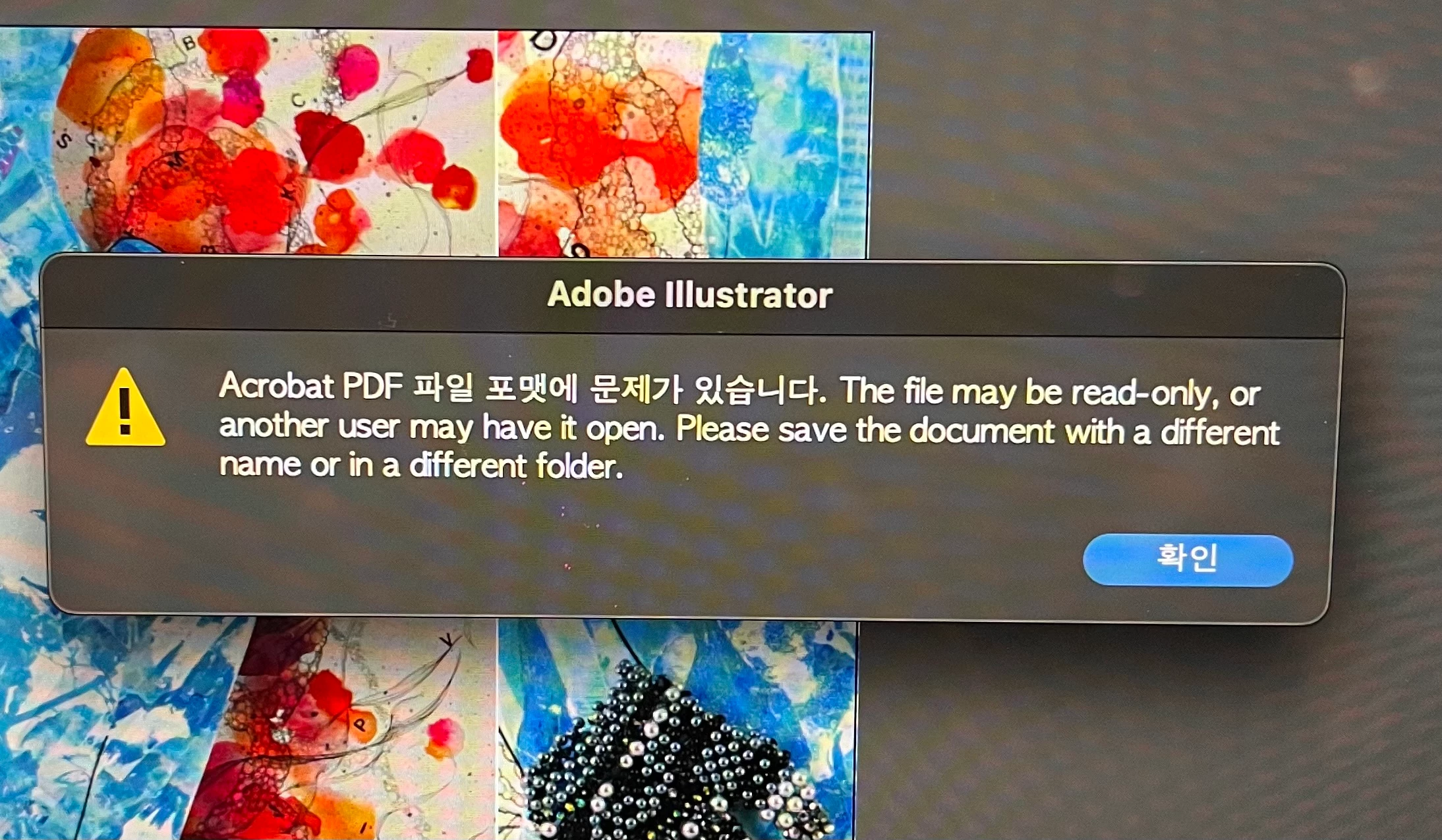 계속 이렇게 뜨고 저장이 안되는데 뭐가 문제일까요..? 아크로밧도 설치했는데... 외장 하드에 있는 파일이라 그런 건지 왜인지 저장이 안 돼요;;;