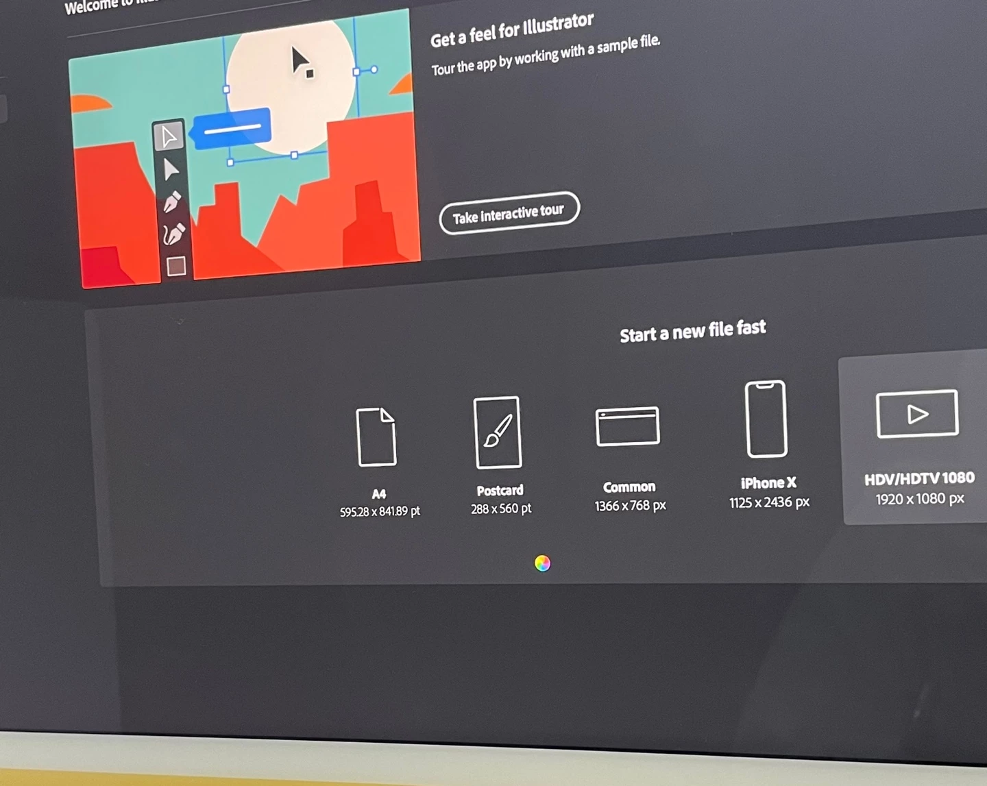 일러스트 홈 화면에서 도큐멘트 설정 후 그 다음으 넘어가지 않고 멈춰 있습니다.