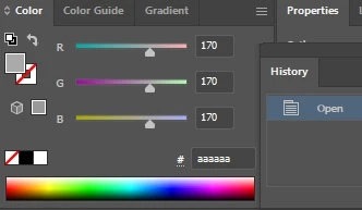 하지만 컬러패널에서 색상코드란(#)에 색상코드를 직접 넣을 경우 히스토리가 생기지 않으며 뒤로가기가 불가능합니다.