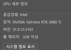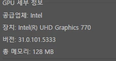 내장 글카만 꺼봐도 실행이 안됩니다.
