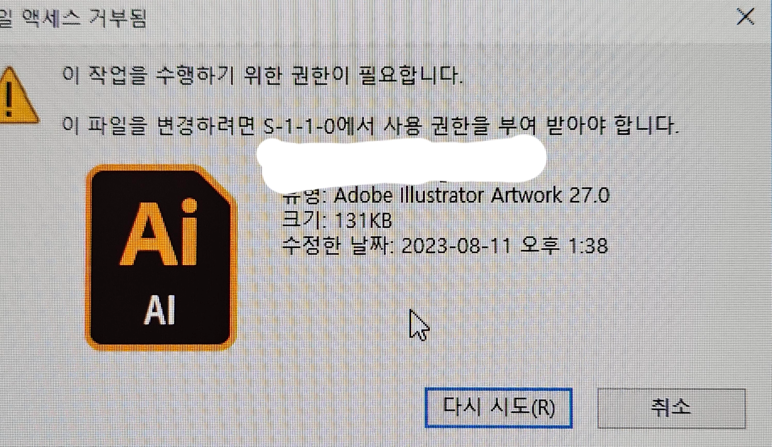 지난 번까진 괜찮다가 이번에 3이 어떻게 사용했는지 2가 다시 로그인을 하고 일러 파일을 열려고 하는데 첨부된 이미지처럼 오류창이 뜹니다