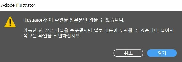 일러스트 프로그램을 열었을때 보이는 최근항목에는 데이더가 보이는 상황으로