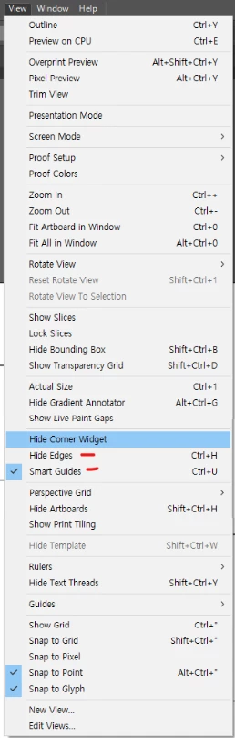 안내선을 끌고오다보면!!!! .... 중심표시가 사라져서 안보입니다. (특히 선)
