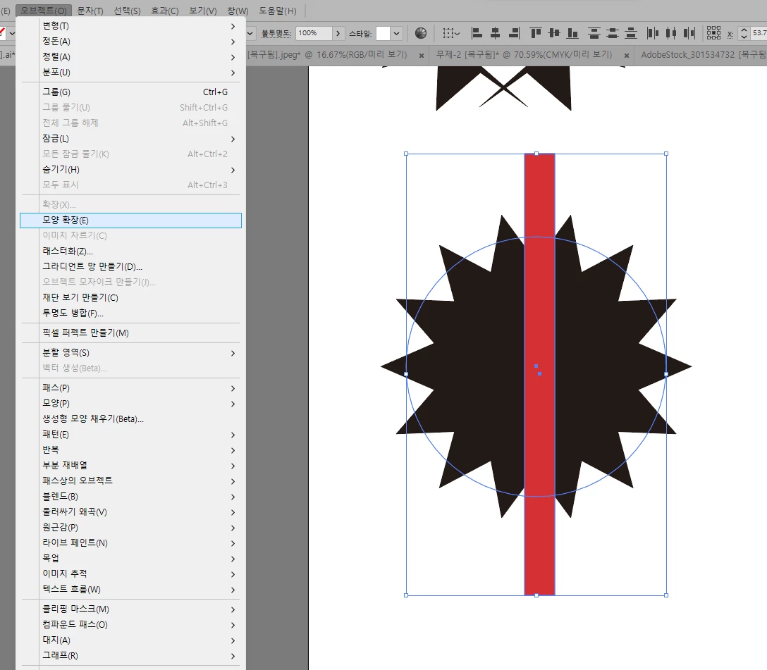 2 .모양 확장후 패스파인더 적용 > 패스파인더 적용후에는 그룹화가 되어있음