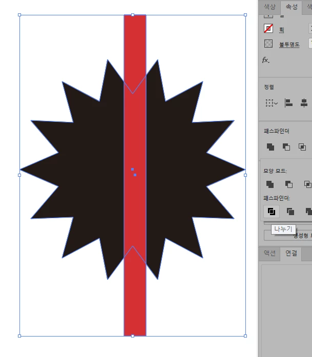 * 패스로 하게 된다면 아래 그림처럼 선 없이, 두개의 오브젝트가 나오게 분리할 수 있습니다*