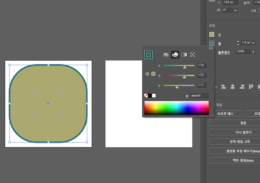 첨부한 이미지처럼 개체의 선 색상을 변경하면 선 색상은 그대로 있고 면 색상이 변경됩니다.