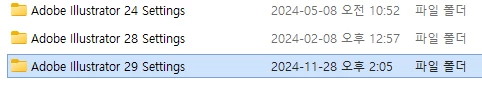 ex) Adobe Illustrator 28 Settings 폴더 이름을 Adobe Illustrator 29 Settings_Backup으로 변경