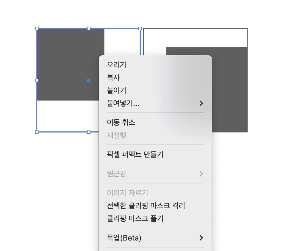 2. 클리핑마스크 개체 다중 선택 시 우클릭 상자 안나옴