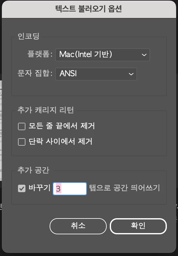 텍스트 불러오기 옵션 상자가 뜨면서 EPS파일이 제대로 안열려요