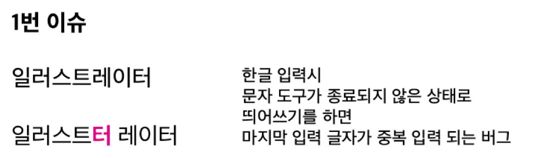 [투표] 한글 입력시 마지막 글자가 띄어쓰기 하려는 부분에 중복 입력되는 버그