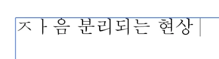 아래와 같이, 한글 텍스트를 입력할 때 자음과 모음이 분리되는 경우가 있는데요.