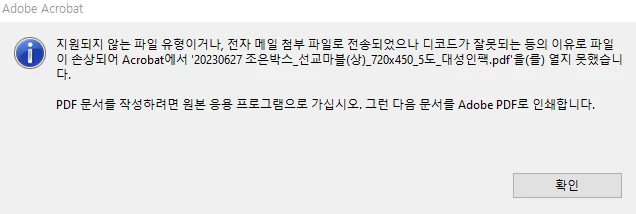 1) 만약 그렇다고 한다면 버전 호환성 문제로 파일을 열 때 문제가 발생 될 수 있습니다. Acrobat을 통해서 PDF 로 열어주신 다음 파일을 PDF로 저장하여 다시 한 번 불러오기를 진행 해보시면 좋을 것 같습니다. ▶ 참고 문서 : Adobe PDF 프린터 사용, Acrobat ▶ 참고 문서 : Adobe PDF 파일 만들기 2) 포토샵을 통해서 파일을 불러오기를 해보시기 바랍니다 3) 일러스트레이터에서 새문서를 만드시고 다시 불러오기를 해보시기 바랍니다. 4) 모든 파일이 열리지 않는지도 확인 해보시면 좋을 것 같습니다.