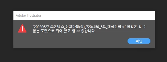 아래문서에 따르면, "읽기 프로세스가 중단되었으며 파일을 액세스하거나 찾을 수 없으면 Illustrator에서 파일을 열 수 없습니다." 되어있어 손상된 파일일 경우 복구가 어려울 수 있습니다. ▶ 참고 문서 : 파일 문제 식별 및 문제 해결