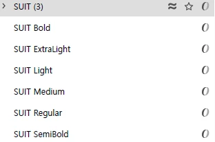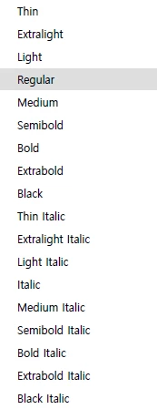 폰트 두께(굵기)가 낱개로 표시됩니다.