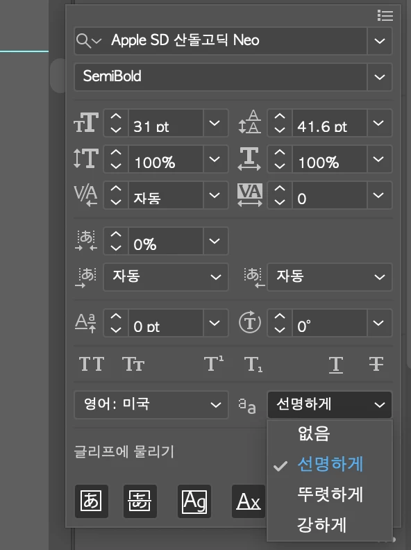 illustrator의 안티앨리어스에서는 해당 기능이 없습니다.