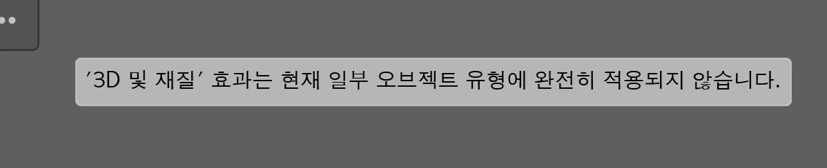 어떤 방법을 사용해도 렌더시 화질 저하가 오고 계속해서 '3D 및 재질 효과는 현재 오브젝트 유형에 완전히 적용되지 않습니다.' 라는 경고가 뜹니다. 이미 화질은 300에 안티엘리언싱 체크까지 했고