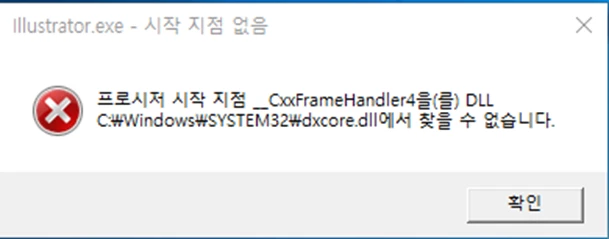 해당 오류 메세지가 출력이 되었고 저는 인터넷어세 'dxcore.dll' 파일을 인터넷에서 구한다음