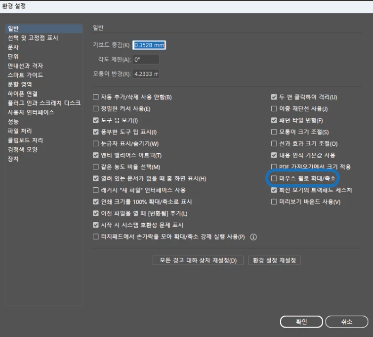 아쉽지만 Illustrator의 기본 설정에서는 Alt 키를 사용하여 확대/축소를 수행합니다.