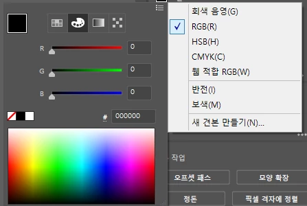 우측 상단 햄버거 메뉴 클릭 후 RGB를 클릭하세요.