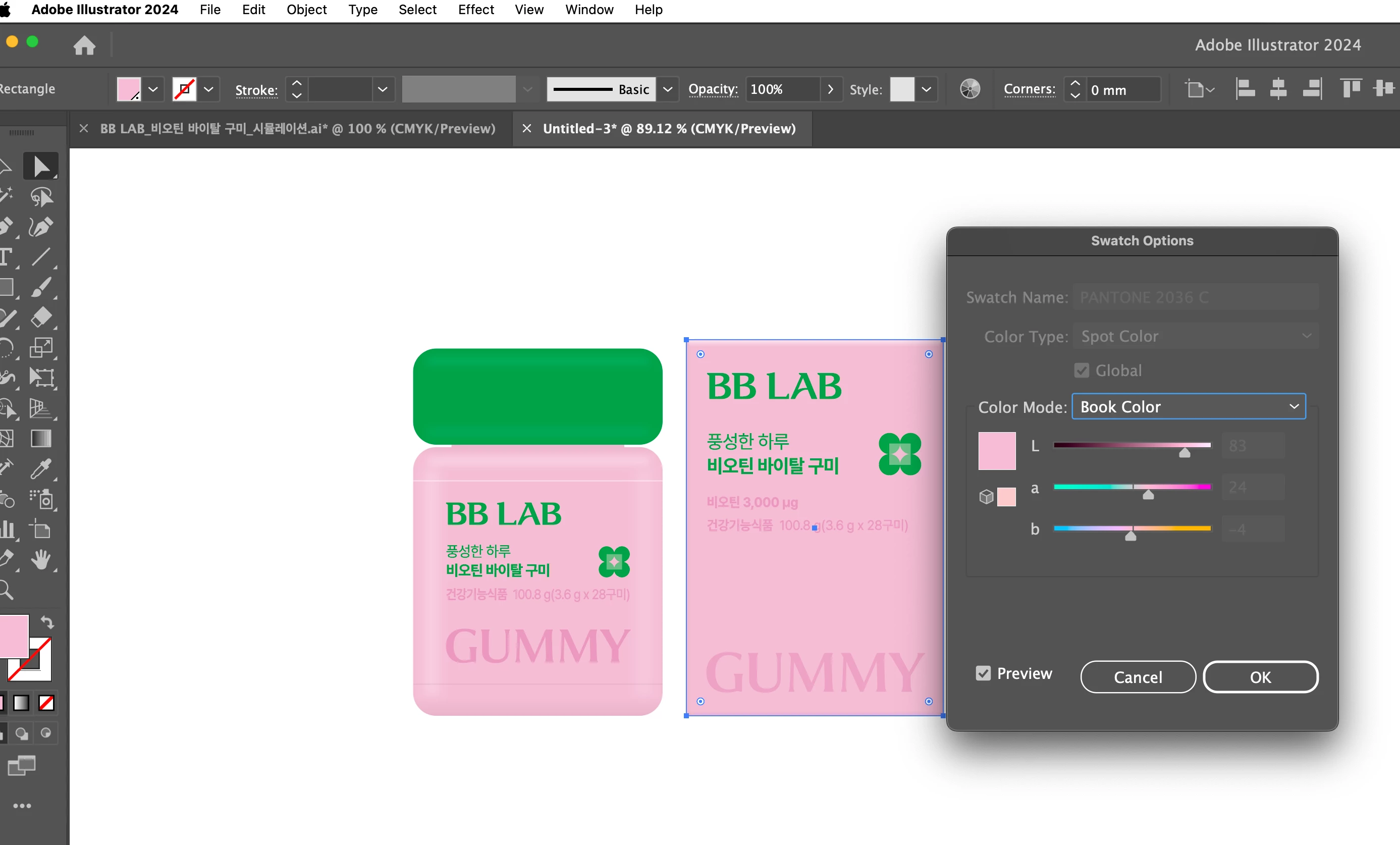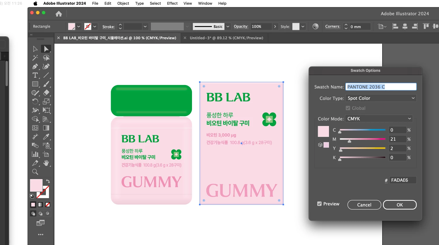 CMYK spot 컬러 지정 후 자동으로 별색(팬톤)컬러로 지정됨
