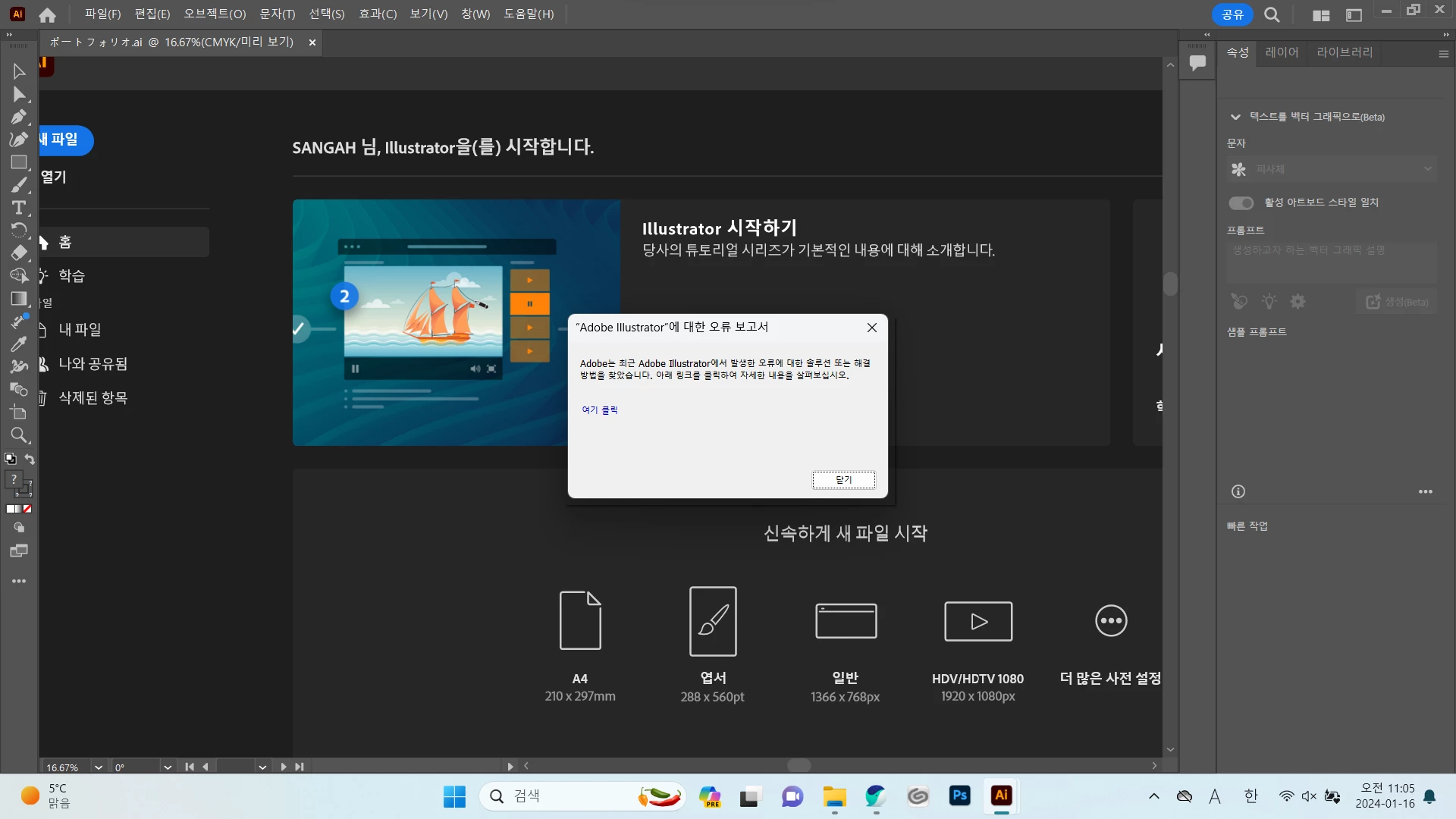 일러스트레이터 사용중 갑자기 프로그램이 꺼졌습니다.