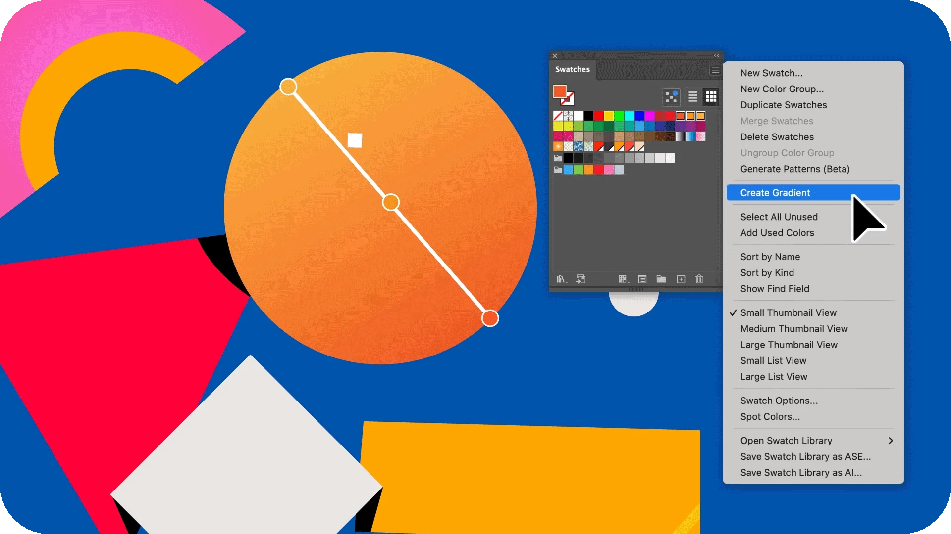 개별색상이나 색상 그룹을 통해 견본패널에서 직접 놀라운 그라디언트를 만드세요.