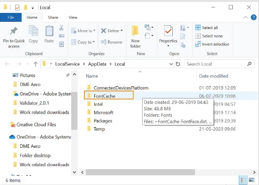 *FNTCACHE*.DAT 또는 *FontCache*.dat 파일을 삭제합니다.