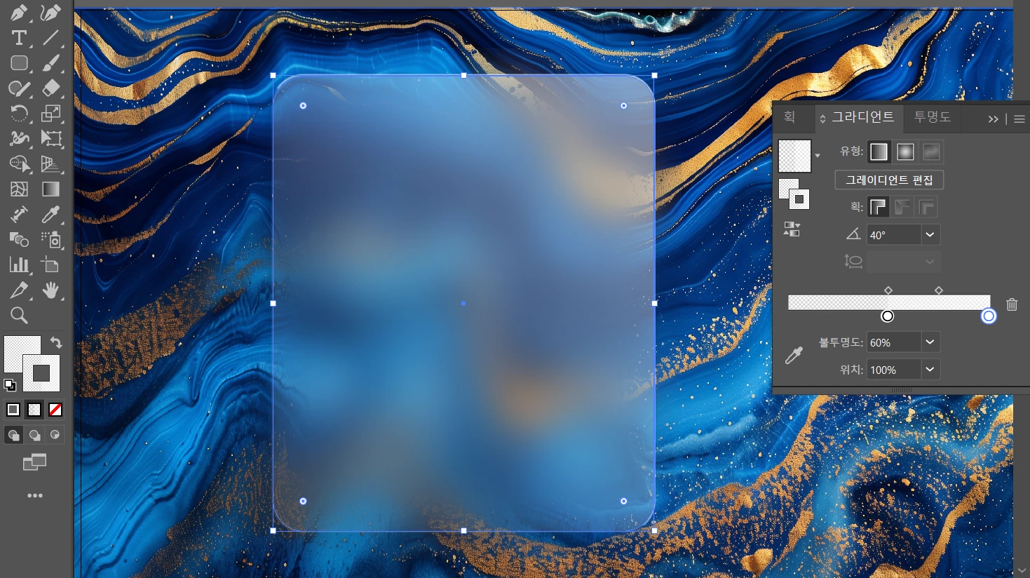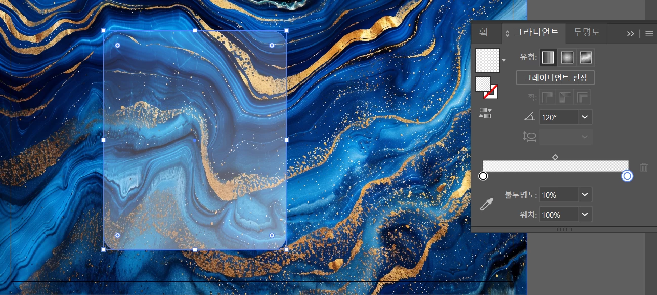 흰색 사각형을 맨 위로 불러와 그라디언트를 적용합니다.